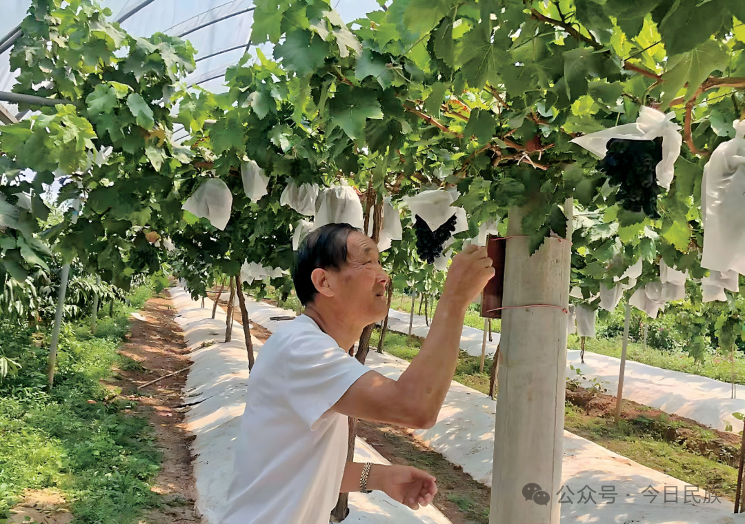 在禄劝茂山镇昆明兰露梦农业科技有限公司的基地里,公司董事长张宝龙正在为农户讲解葡萄的品相知识。兰露梦公司的葡萄种植基地带动了茂山镇 100余名农户参与到特色水果培育种植中来,基地也扩大到2000余亩,从茂山镇扩展到了团街镇,每年每亩可产“阳光玫瑰”约2000公斤。在“精细到粒”的管理下,基地出产的葡萄获得了有机产品认证,“禄果”品牌在长三角、珠三角等市场很受欢迎。