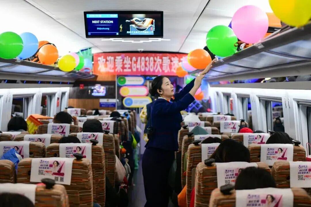 一是客运能力供给精准匹配市场需求。统筹用好今年新增的线路和装备资源,加大客运能力供给,根据铁路12306售票大数据,动态优化调整列车开行方案,精准满足旅客出行需求,1至11月,全国铁路日均安排开行旅客列车11258列、同比增长7.1%。铁路12306客户服务中心新增团体票电话受理服务,铁路12306客户端(含网站)单笔购票数量上限调至19张,单个铁路12306账户可添加的“乘车人”数量由15人调至30人,较好地满足了团体旅客集中购票出行需求。精准对接各地文旅热点,密切关注赛事、展会、演出等活动安排,定制化开行“歌迷专列”“球迷专列”“研学专列”等,激活“主题列车+”经济,促进了服务消费发展。加强跨境客运组织,开好中越、中俄、中蒙等国际列车,广深港高铁、中老铁路分别发送跨境旅客2894万、24.4万人次,推动跨境游升温,有效助力人员交流和商贸往来。保持普速旅客列车开行规模,开好公益性“慢火车”和乡村振兴列车,为老少边和脱贫地区群众出行提供便利。