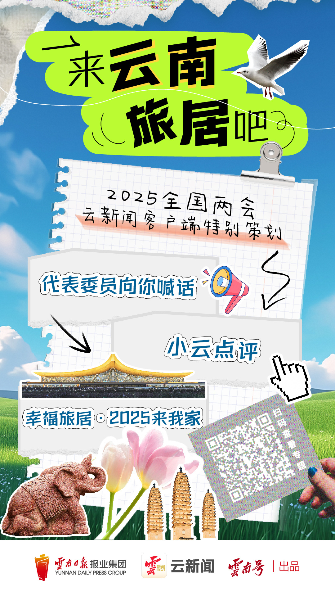 云新闻客户端第一时间推出“2025全国两会特别策划·来云南旅居吧”融媒体报道,邀请全国人大代表、政协委员为家乡代言;发起“幸福旅居·2025来我家”联动策划,向全国游客发出邀请;采访正在云南旅居的朋友,带来最真实的“大众点评”和“打卡攻略”,全方位、多角度展现云南旅居魅力。