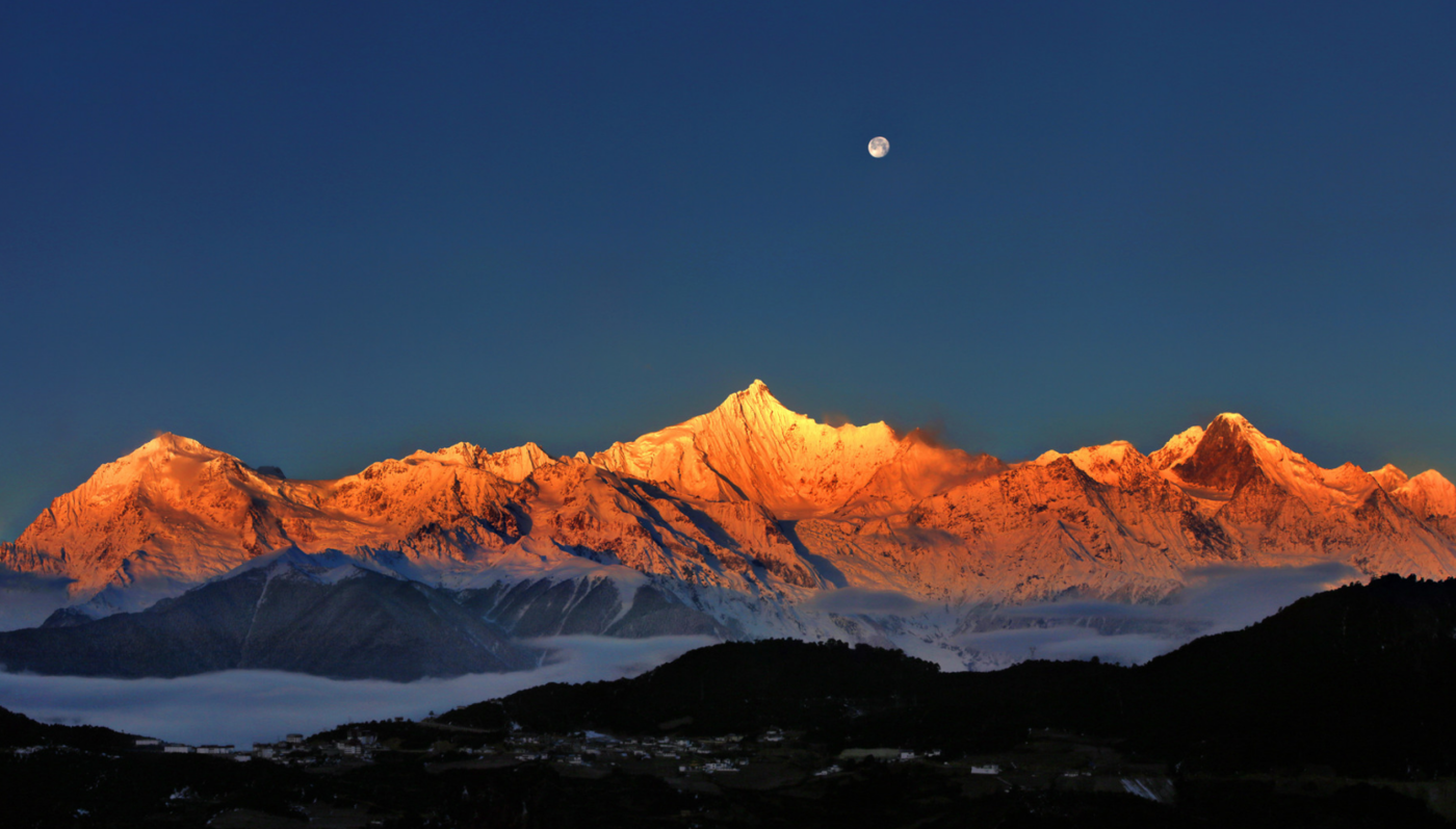穿透云层映照在玉龙雪山上