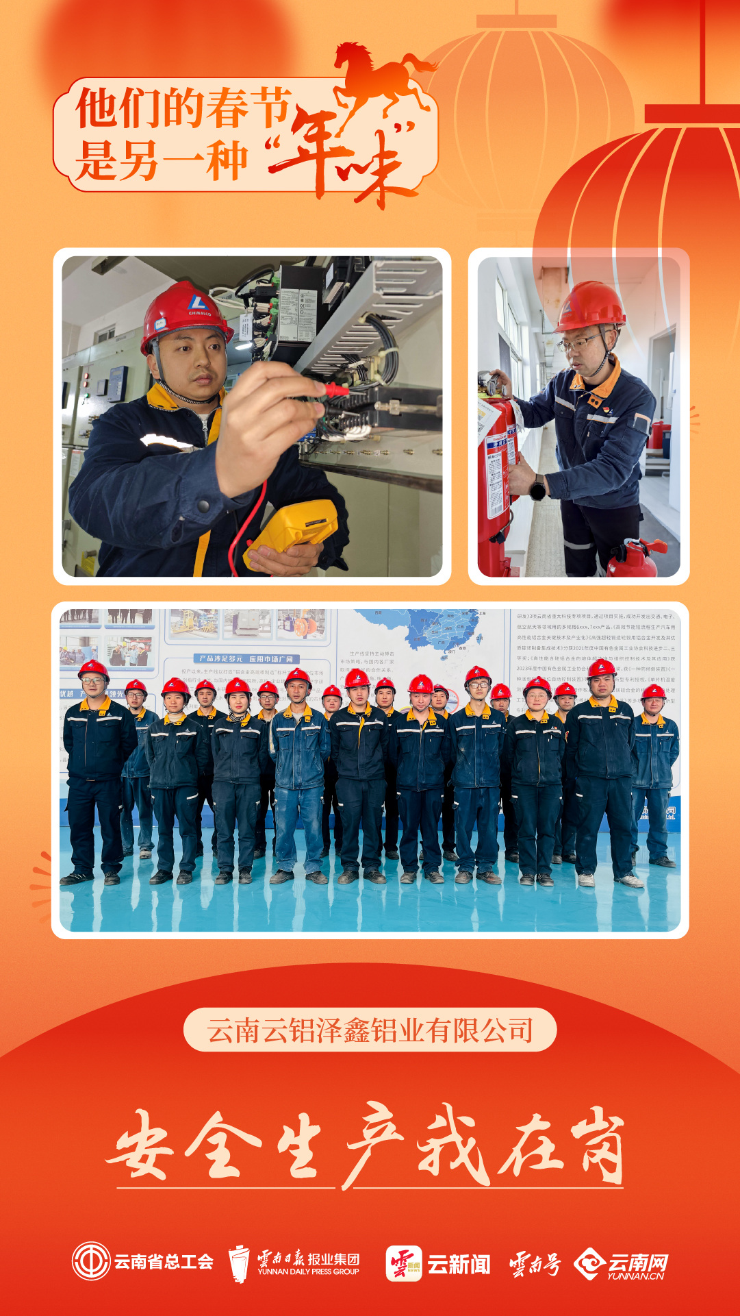 在云南云铝泽鑫铝业有限公司,电解生产的炉火昼夜不息,机器的轰鸣声与春节的喜庆交织成独特的年味。
