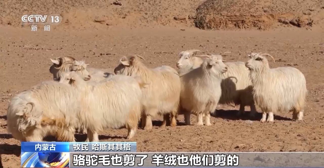 牧民 哈斯其其格:他们经常来帮忙,骆驼毛和羊绒都是他们剪的。