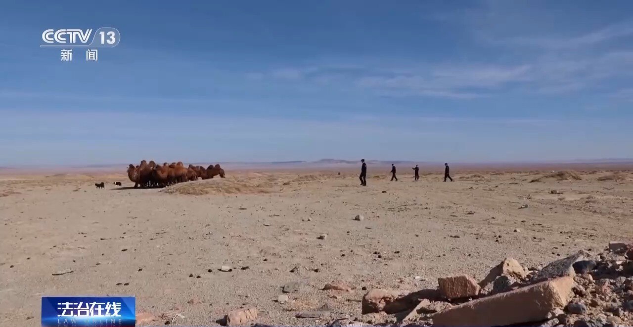 内蒙古出入境边防检查总站算井子边境派出所教导员 岳国旗:赶骆驼的过程当中,尽可能和骆驼保持一定的距离,尤其是不要站在骆驼的正后方,骆驼如果受惊了踹你一脚,那个力量大、速度快。