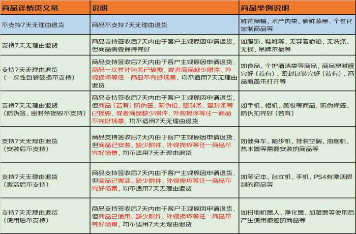 “不支持七天无理由退换”