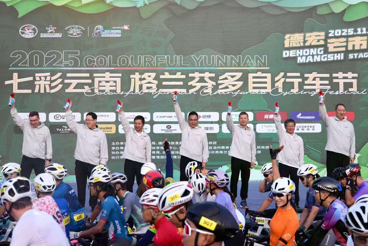 值得一提的是,赛事特邀三届UCI世界公路自行车锦标赛冠军、七次环法绿衫得主彼得・萨甘亲临现场,让国内骑友得以近距离对话世界冠军。中国残疾人自行车队教练李鹏与运动员王小梅的参与,进一步传递全民参与、包容共享的赛事精神。在国际联动层面,来自缅甸、老挝、越南、柬埔寨、马来西亚、孟加拉国等国家驻昆明总领事馆的外交官亮相芒市站,其中,缅甸、柬埔寨、马来西亚、孟加拉国总领事,老挝副总领事等共计17名外交官参与了38公里短距离组的角逐。车轮转动间,外交官们深度感受到云南的运动活力与发展魅力,彰显出赛事的国际化属性。