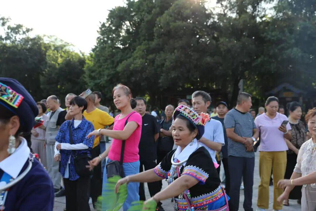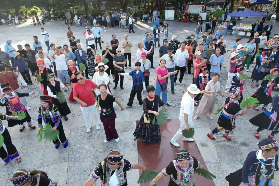 现场激昂的音乐、优美的舞姿吸引了越来越多的人加入其中,舞圈也越来越大。不少围观的旅居人也加入其中跳起舞来,大家随着音乐节奏变换舞姿,充分感受着舞蹈带来的快乐,共同演绎了一场民族团结的盛大画卷。