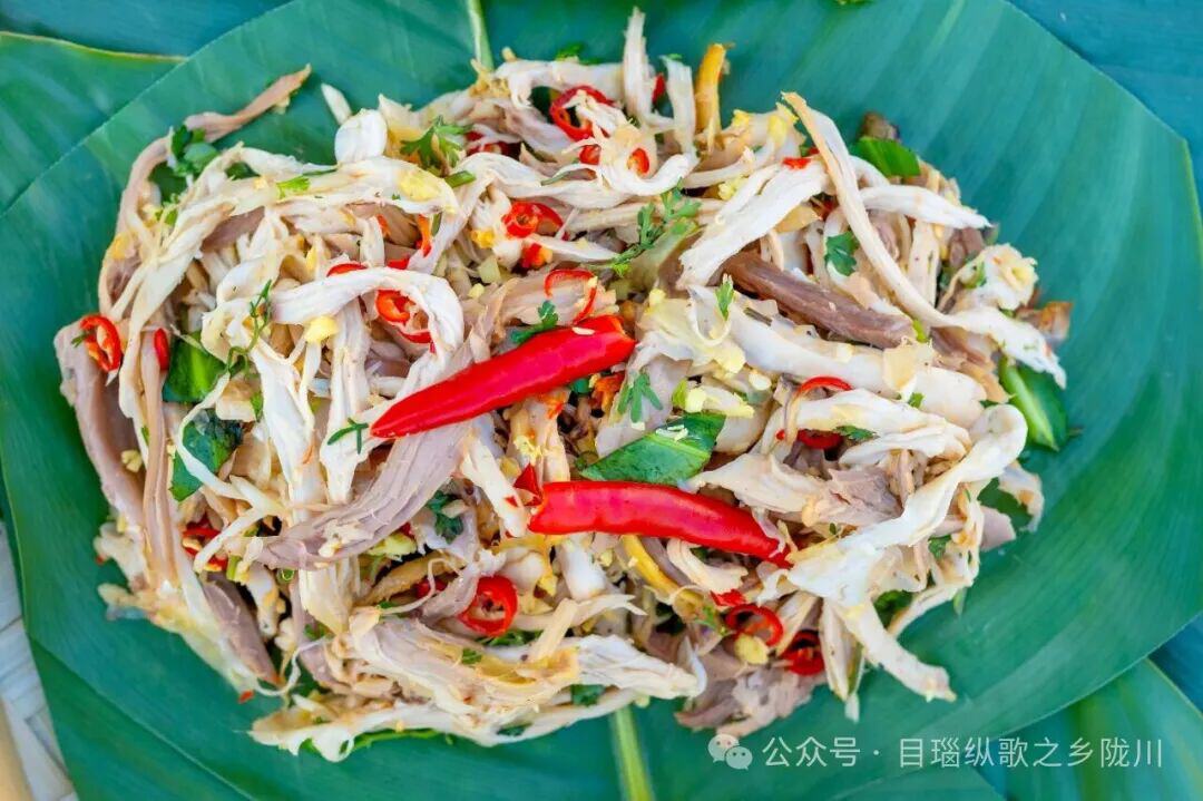 鬼鸡听似“吓人”,实则鲜香上头。乌鸡撕碎后与缅香菜、小米辣等调料舂制而成,酸辣鲜香,越嚼越香,开胃解腻。