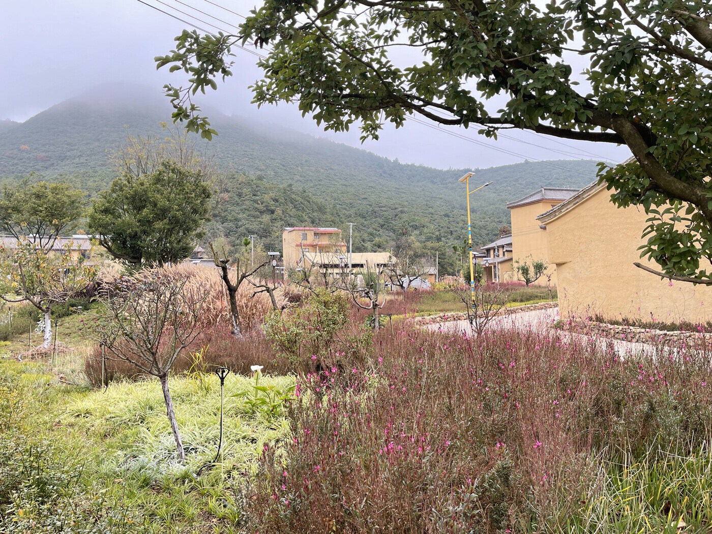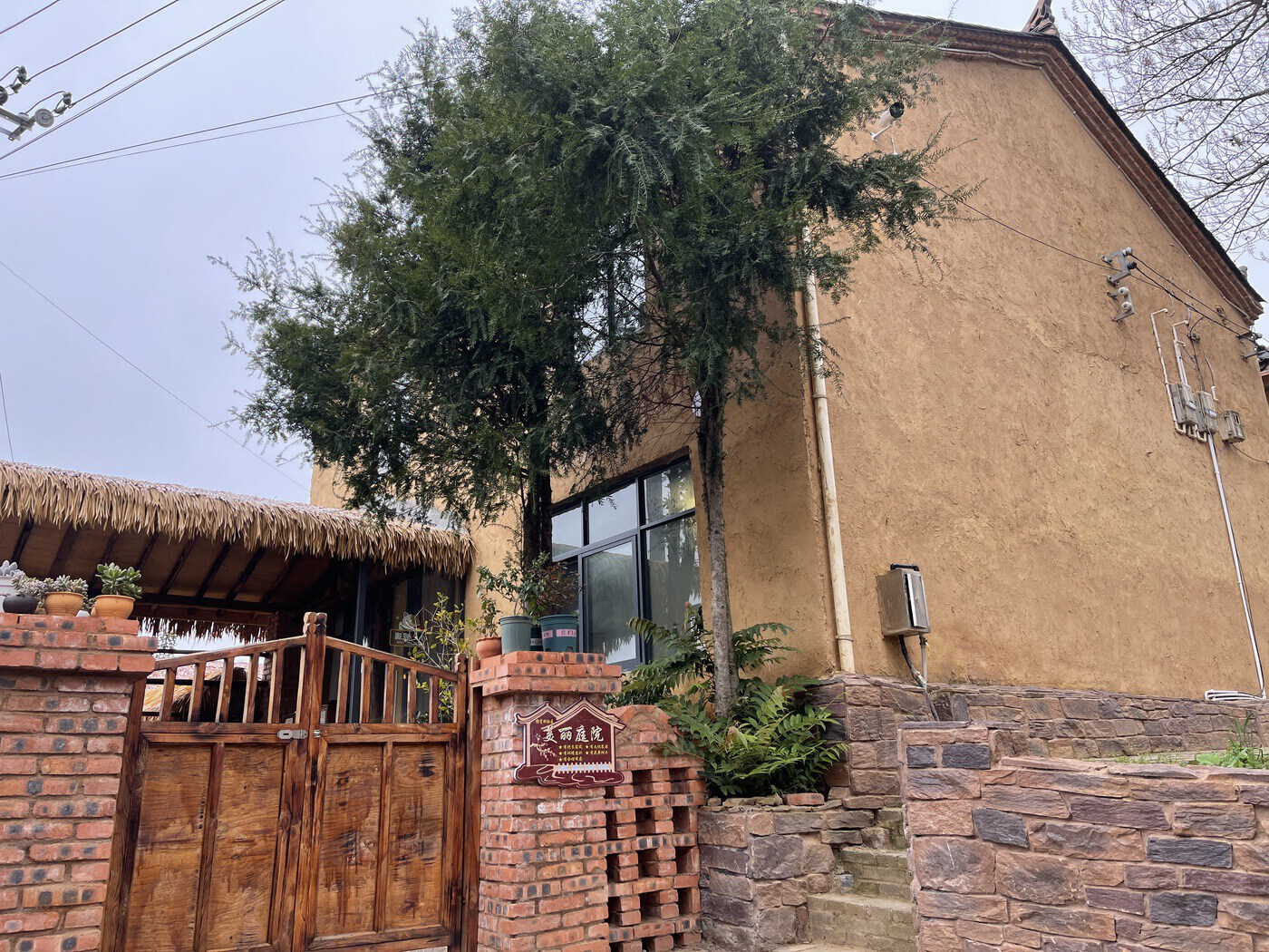 细雨迷蒙成雾,空气冷冽提神,围着火炉品一杯热茶,黄色落叶在空中打着旋,周围的黄土墙都变得生动。冬日清晨,村中小店都还未开门,偶有几声犬吠,也惊扰不到旅居客们的美梦。