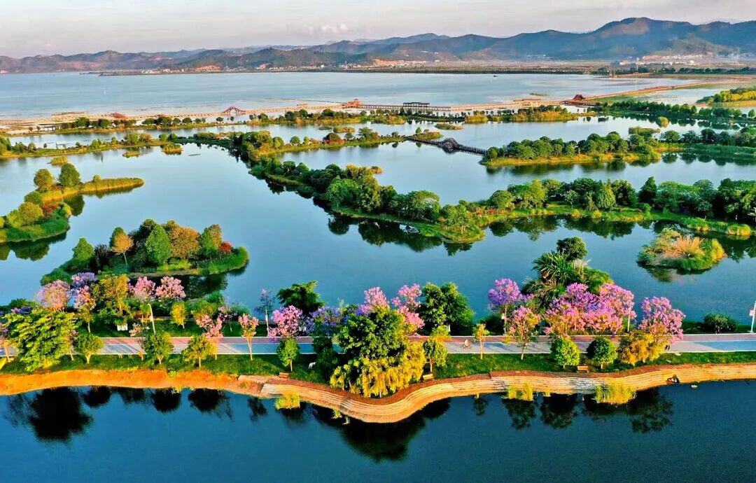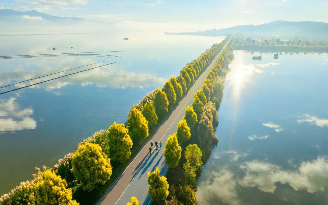 这条赛道藏着三重绝美景观:水域上,“三岛九曲七十二湾”的湖光涟漪美不胜收,红嘴鸥、白鹭等176种野生鸟类在此栖息,其中不乏3种国家一级保护鸟类;陆域间,春有木棉花、蓝花楹次第绽放,夏有荷花亭亭玉立,秋有稻田碧浪翻滚,南岸的神黄豆花海更是打卡地。