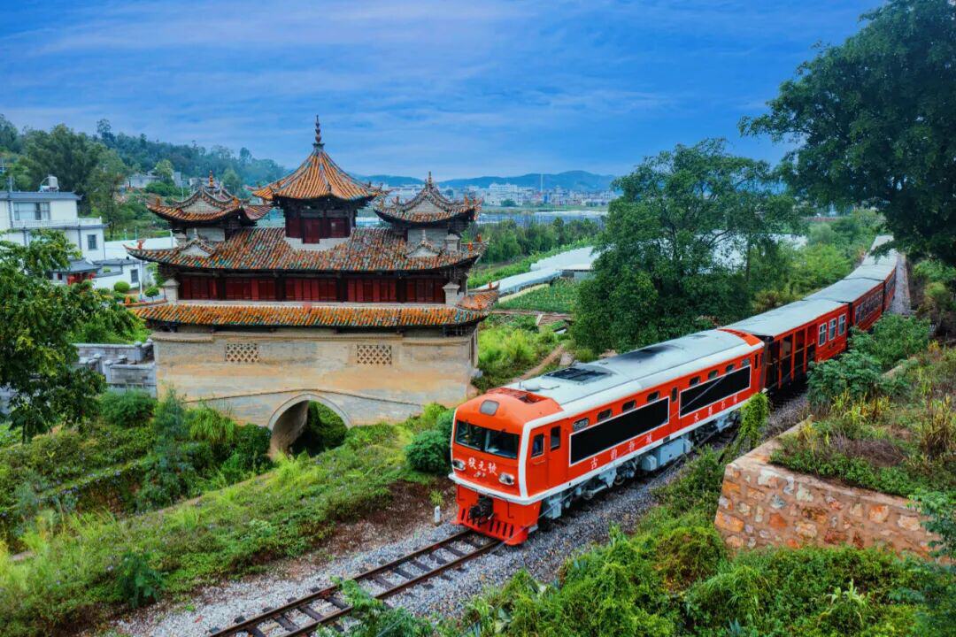 当然,石屏的惊喜还藏在复古的时光里。百年米轨铁路穿城而过,乘坐“状元号”小火车缓缓前行,窗外是田园村落,车内是复古风情,随手一拍就是穿越感满满的大片。朱家花园里的古城图书馆,不仅有浩如烟海的古籍,还能体验活字印刷、植物拓染,在动静之间感受文化的魅力。
