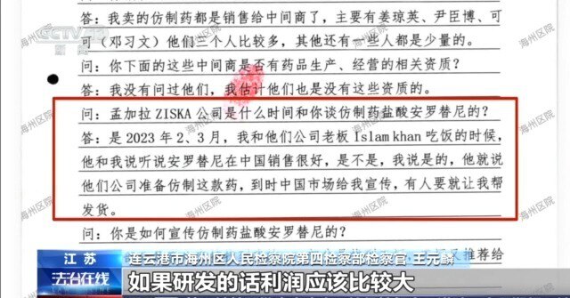检察官 王元麟:毛某与仿制该款药品制药厂的一名高级管理人员比较熟悉,由于这款药在中国的销量比较好,两人商定由国外这家药厂进行仿制,毛某则在中国作为总代理进行销售。