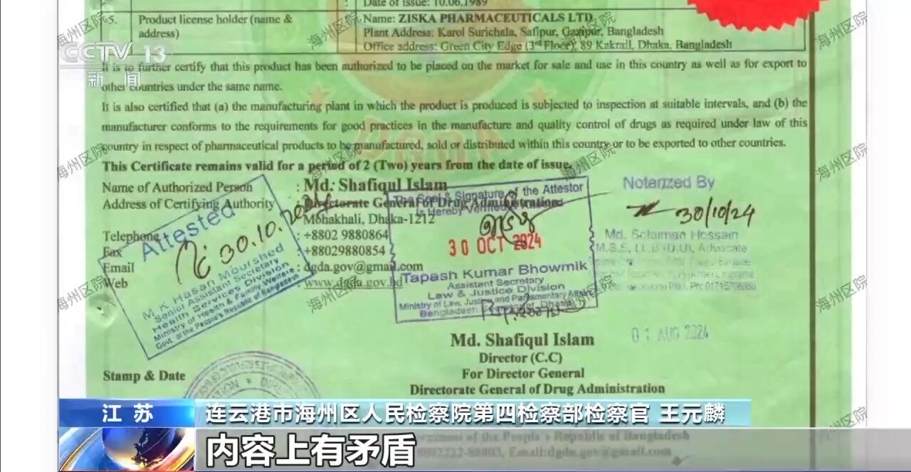 检察官 王元麟:同一时间出具的材料,内容上有矛盾,有的材料显示许可的药品是片剂,有的材料显示许可的药品是胶囊。从事实上来看,这款药品根本就不存在片剂,这个材料跟事实存在很大的差别,有可能是伪造的。
