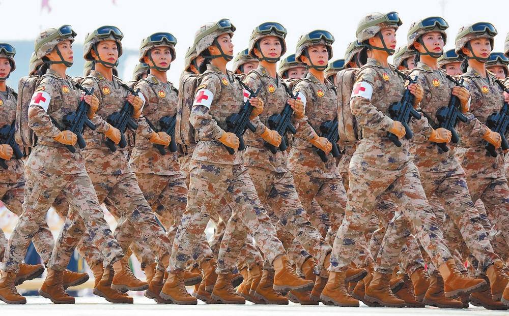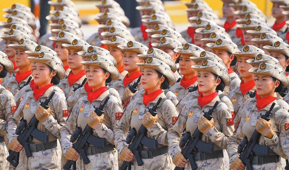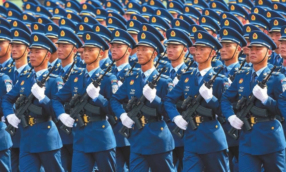 网络空间部队方队接受检阅。 新华社记者 陈斌 摄