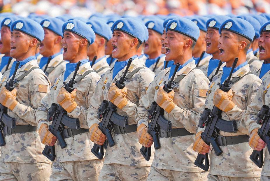 维和部队方队接受检阅。 新华社记者 万象 摄