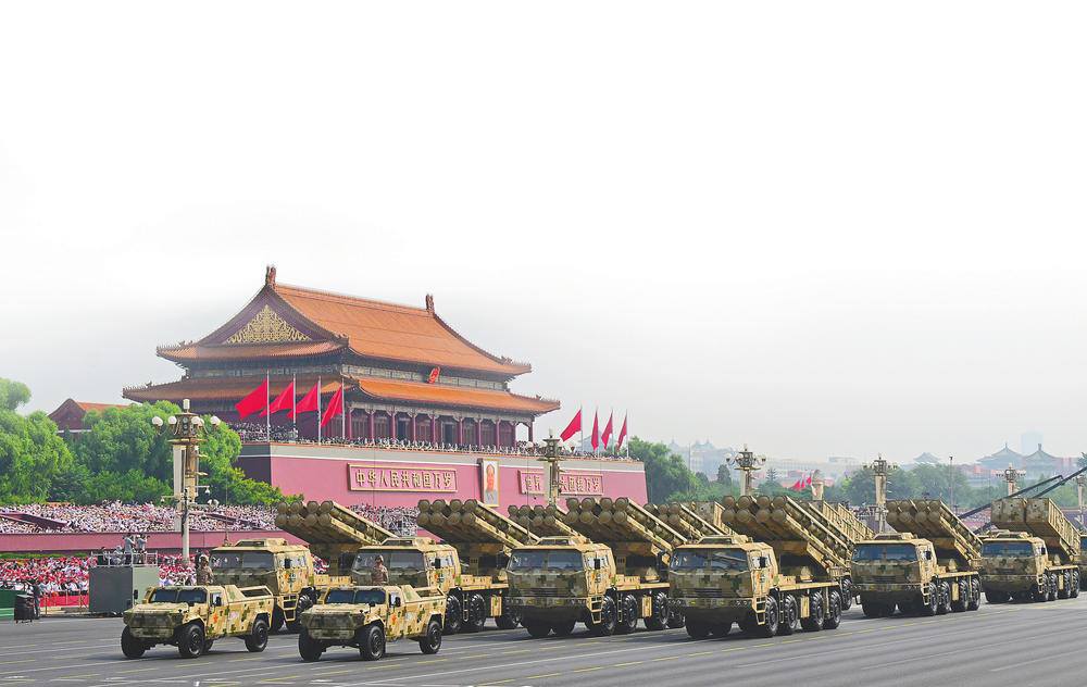 火箭军方队接受检阅。 新华社记者 张龙 摄