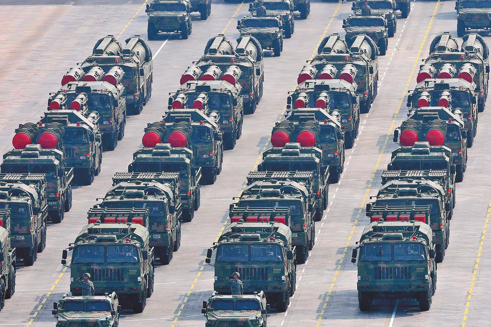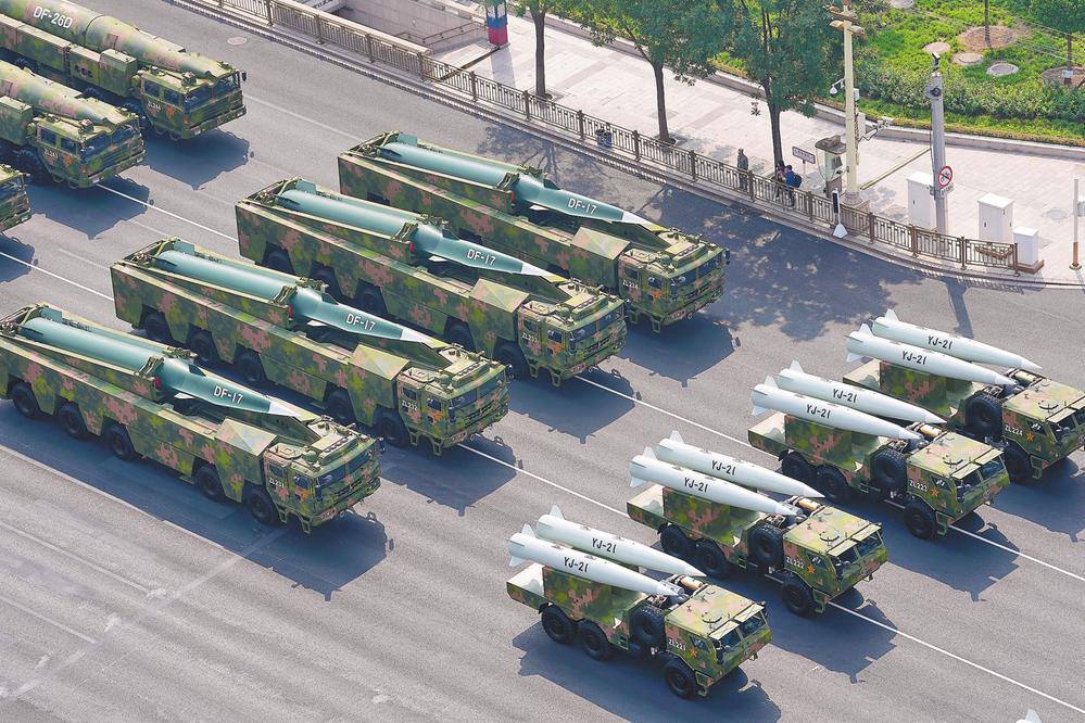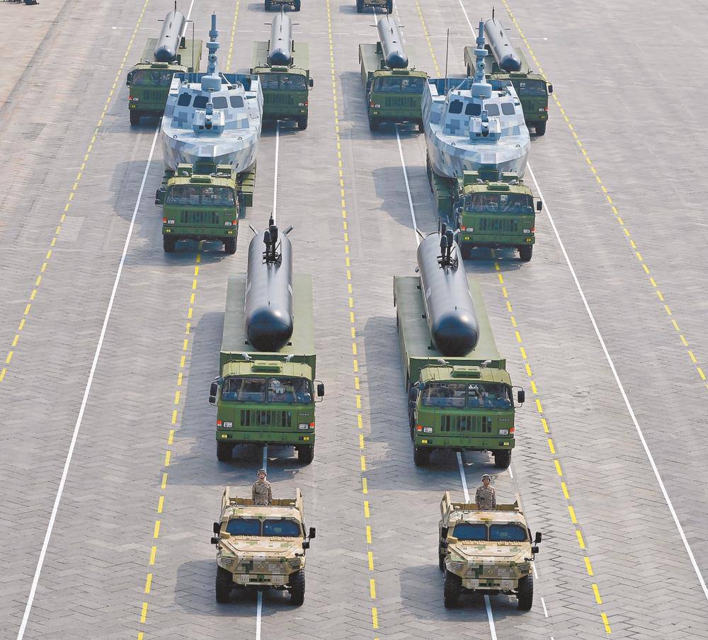高超声速导弹方队接受检阅。 新华社记者 胥冰洁 摄