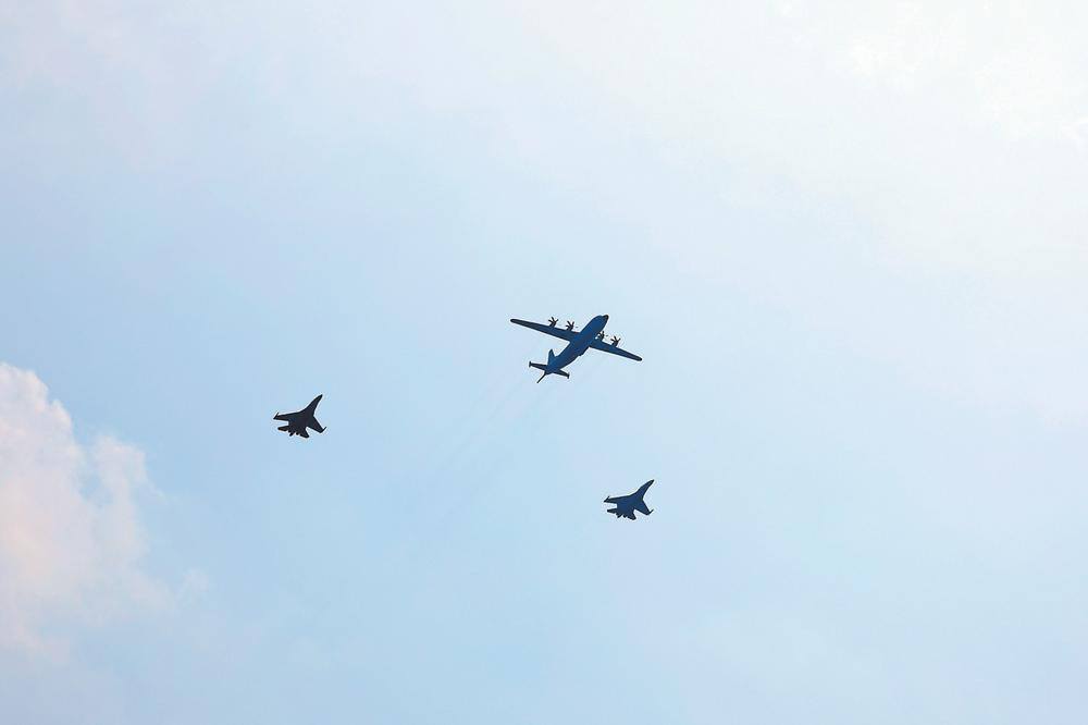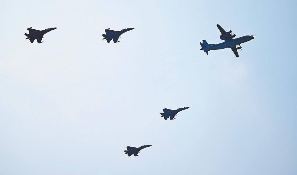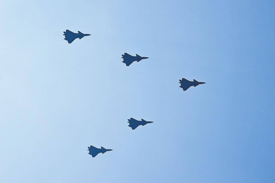 舰载机梯队接受检阅。 新华社记者 郑焕松 摄