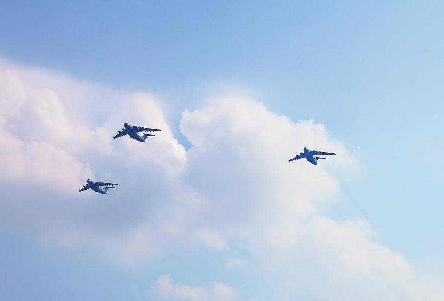 运输机梯队接受检阅。 新华社发 武冲 摄