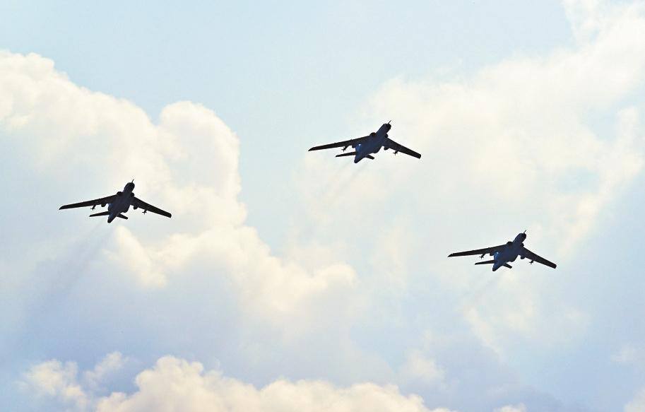 轰炸机梯队接受检阅。 新华社记者 李鑫 摄