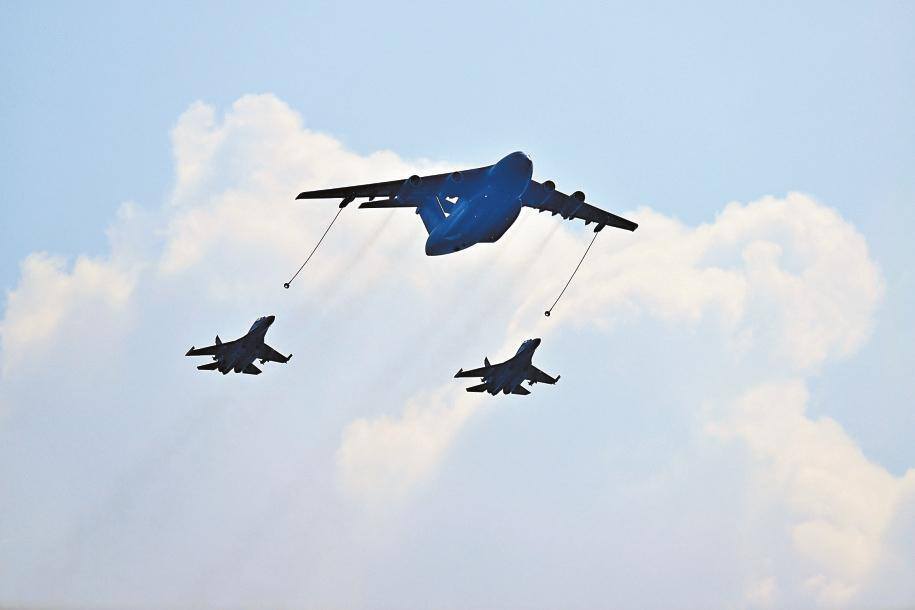 加受油机梯队接受检阅。 新华社记者 李鑫 摄