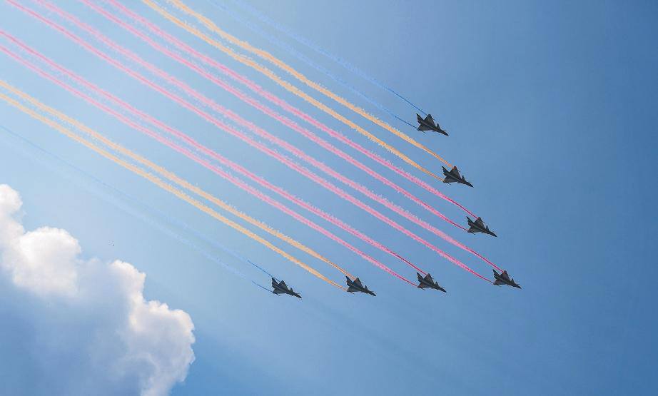 教练机梯队接受检阅。 新华社记者 颜麟蕴 摄