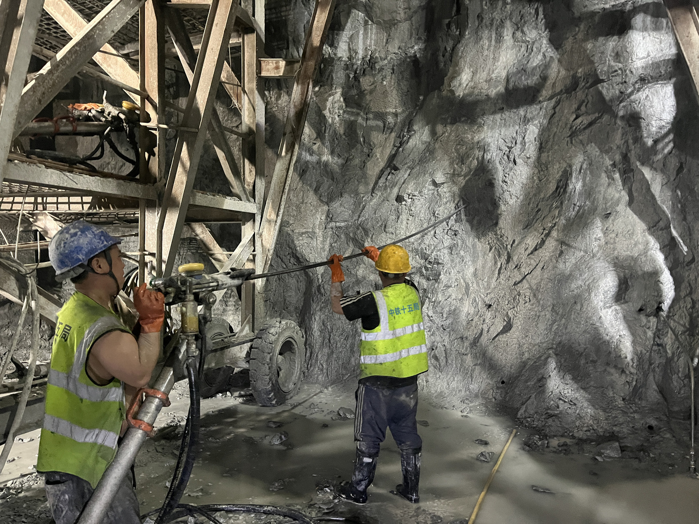 比高温更棘手的,是高压富水的地质挑战。竖井区域预测水压超3Mpa,突泥涌水风险高悬。建设者们未雨绸缪,综合运用三维成像、TSP、瞬变电磁法及超前水平钻等技术,精准摸清地下“水脉”;通过“竖井大泵抽排+正洞超前钻探释压”双管齐下,牢牢锁住水压,每一次参数调整,都经多方现场论证,只为守住安全底线、追求效率最优。