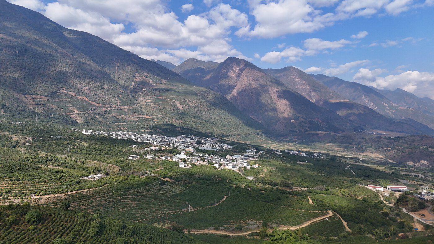 站在观景台俯瞰,万亩咖啡园蔚为壮观。如今的新寨村,山上咖啡树成林,院里咖啡豆飘香,村里游客络绎不绝,70余年的咖啡种植史,终于沉淀出乡村振兴的醇厚滋味。