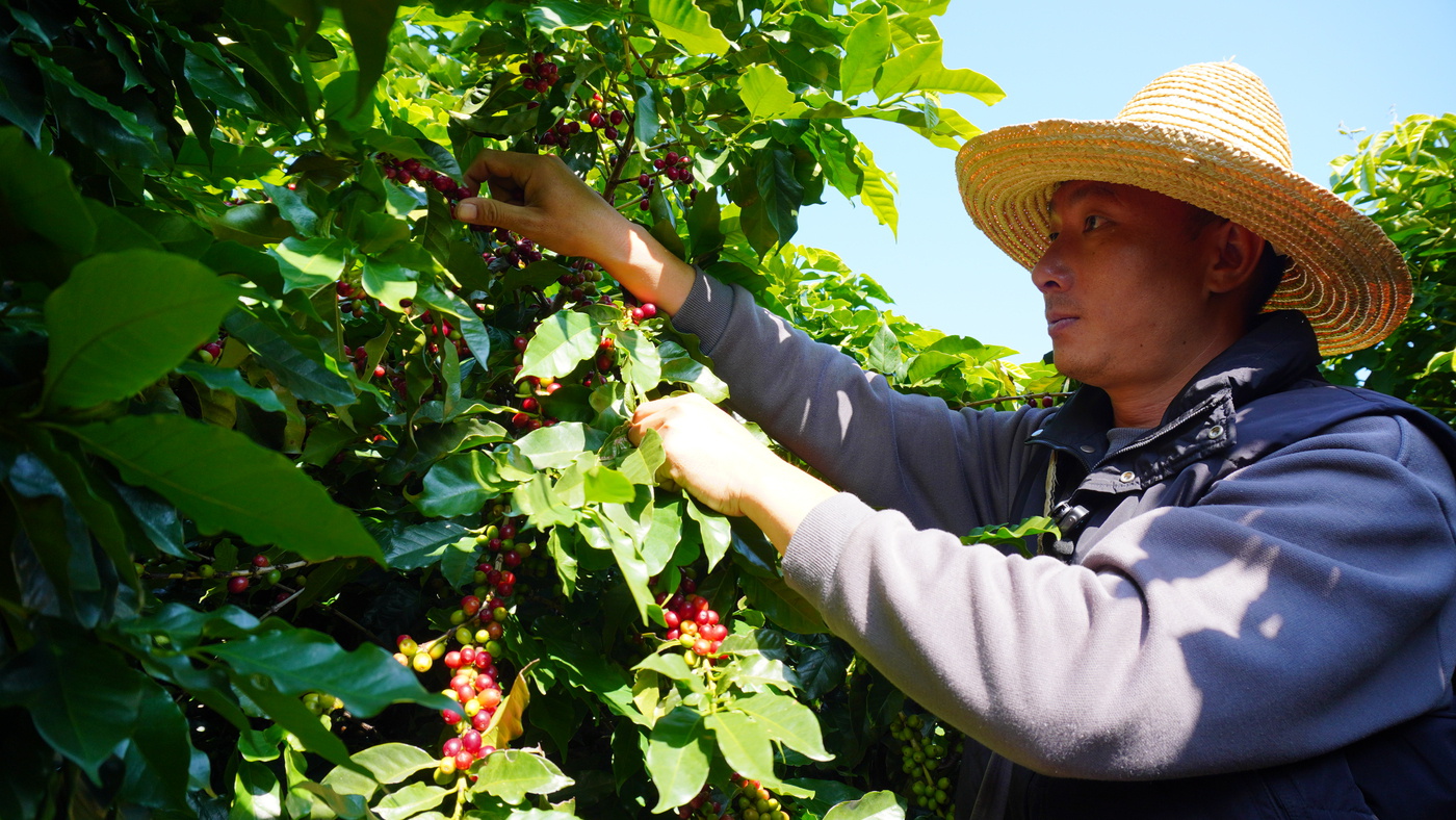 新寨村积极探索“村委会+企业+合作社+基地+农户”的“庄园+”发展新模式,将502户农户全部纳入产业链,通过技术培训、统一收购、保底定价等举措,精品咖啡生豆收购价飙升至每公斤60元,是以往普通咖啡豆的10倍。