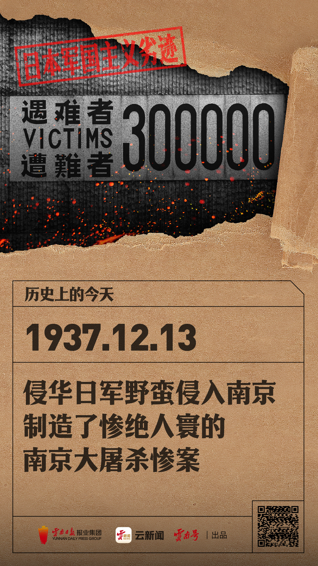云新闻推出“日本军国主义劣迹” 系列报道,通过还原历史真相,揭示日本军国主义给世界带来的深重灾难。以史为鉴,敲响警钟。本期报道聚焦:88年前的12月13日惨绝人寰的南京大屠杀惨案。同时今天也是第十二个南京大屠杀死难者国家公祭日。