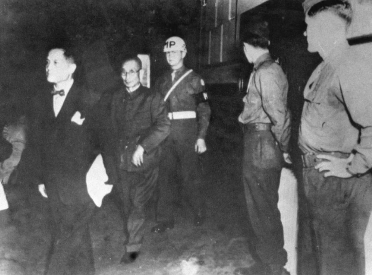 当年在南京制造大屠杀的主犯华中派遣军司令松井石根(左二)被处决。新华社
