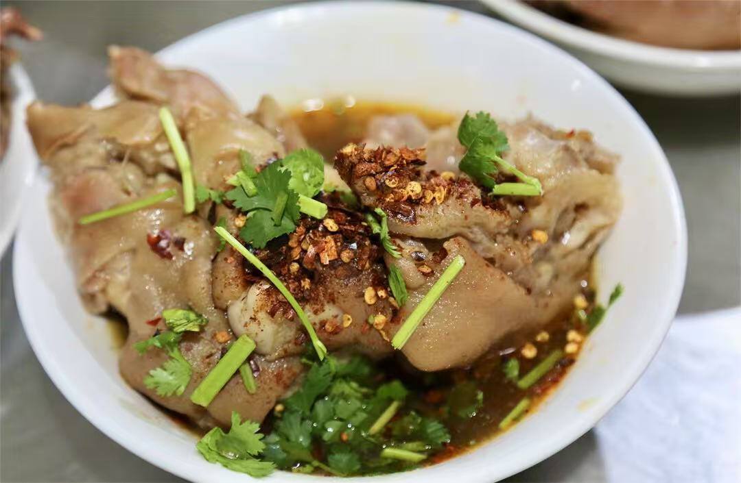 历经汆烫、冷浸、老卤慢煨与秘汁深浸等多道工序,配以20余种香料,遵循“三分煮,七分泡”之法,使鸡肉饱含醇厚酱香。斩件装盘后淋上秘制味汁,以热油炝香辣椒、花椒,再撒芝麻与葱花,成品油亮如琥珀,肉质紧实入味,咸鲜甘甜交融。其酱汁拌饭,更是令食客念念不忘的一绝。