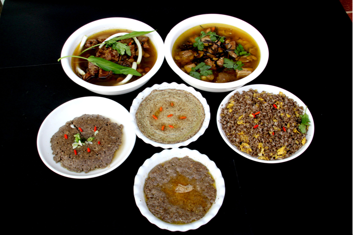 小黑药蒸肉是华宁很有名气的美食,“小黑药”是云南民间的俗称,其学名为“显脉旋覆花”,别名“威灵仙”,属菊科多年生草本植物。小黑药是一种药食两用,纯生态,无污染,老少皆宜的天然食品。小黑药蒸肉饼、蒸鸡蛋、炒饭、炖鸡都是非常美味的食物。