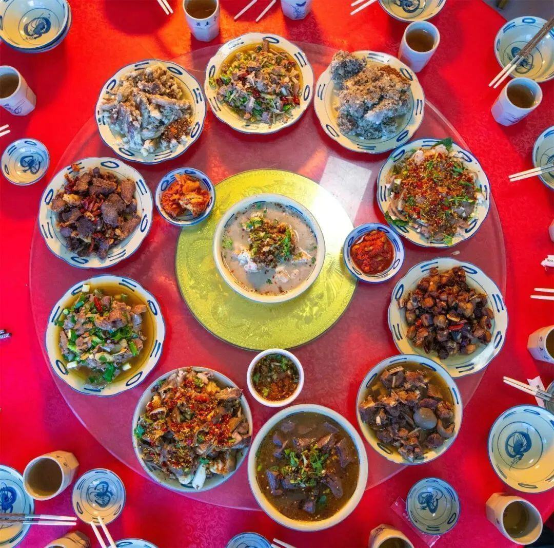 以高原湖泊所产多种名贵鲜鱼烹制的全鱼宴堪称江川湖鲜美食一绝。汤鲜肉嫩的铜锅大头鱼,咸鲜清淡的菊花鱼卷,外香里嫩的荔枝鱼圆,酥脆喷香的炸鱼排,脆嫩酸甜的双椒炒鱼肚,醇厚回味的锡箔包烧烤青鱼……摆盘精致、搭配多彩、味道丰富,既是舌尖上的盛宴,也是历史文化的生动载体,每一口都能品出江川千年的韵味与传承。