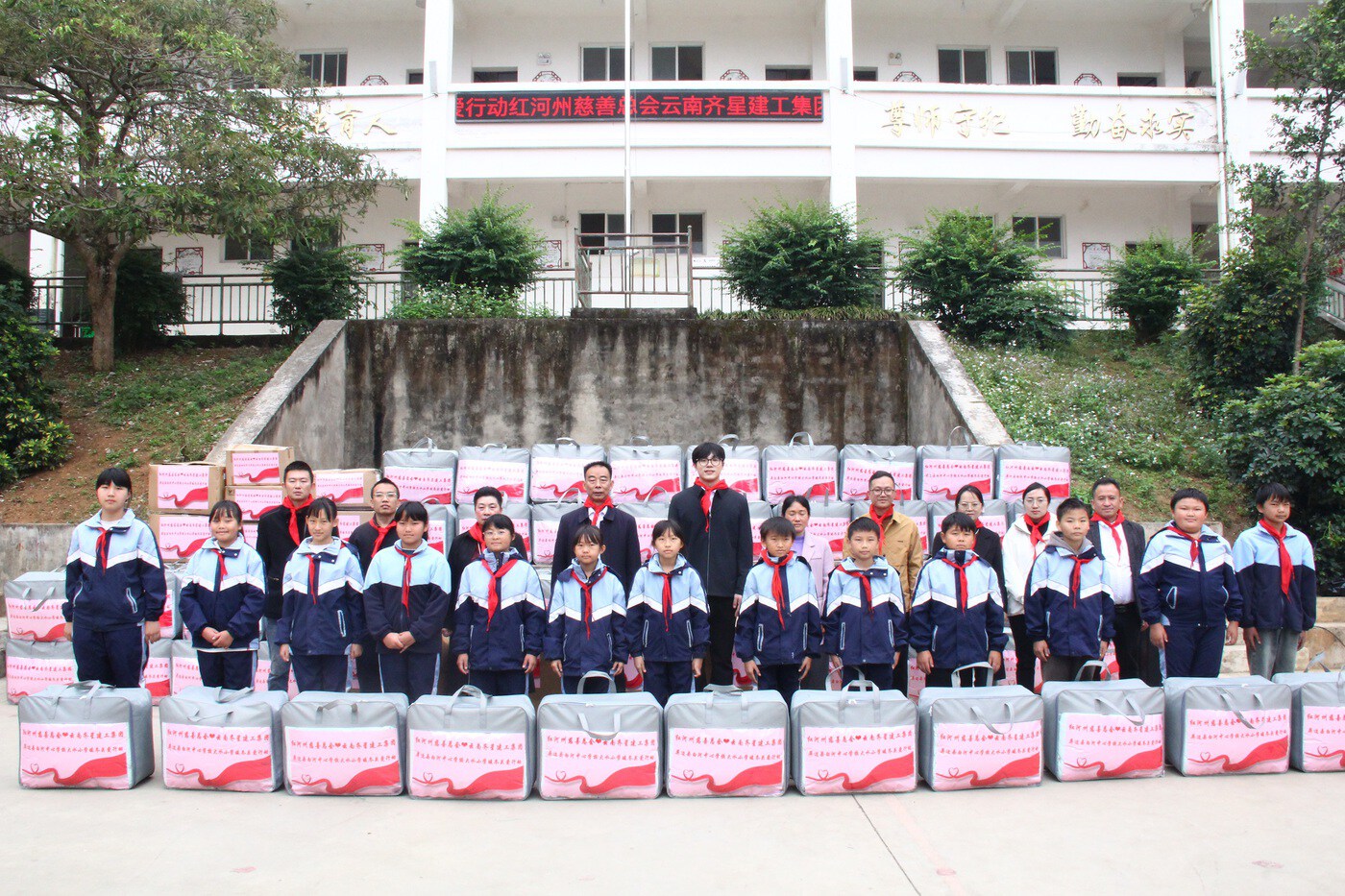 红河州慈善总会携手云南齐星建工集团,走进屏边县白河中心学校大水小学与蒙自市西北勒乡中心学校,将价值10万余元的保暖物资与学习用品精准送达。这已是团队第二次暖心奔赴,崭新的物资、亲切的叮嘱,让边疆校园的每个角落都溢满温情,为孩子们驱散冬日寒意,在他们心中播下感恩与奋进的种子。