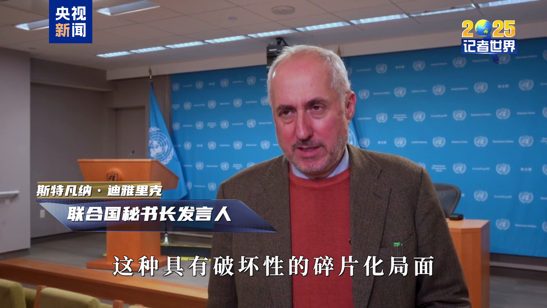 联合国秘书长发言人 斯特凡纳·迪雅里克:联合国秘书长希望,世界能够克服我们目前看到的、这种具有破坏性的碎片化局面,通过有原则的多边行动重新团结起来,为人类和地球带来积极成果。