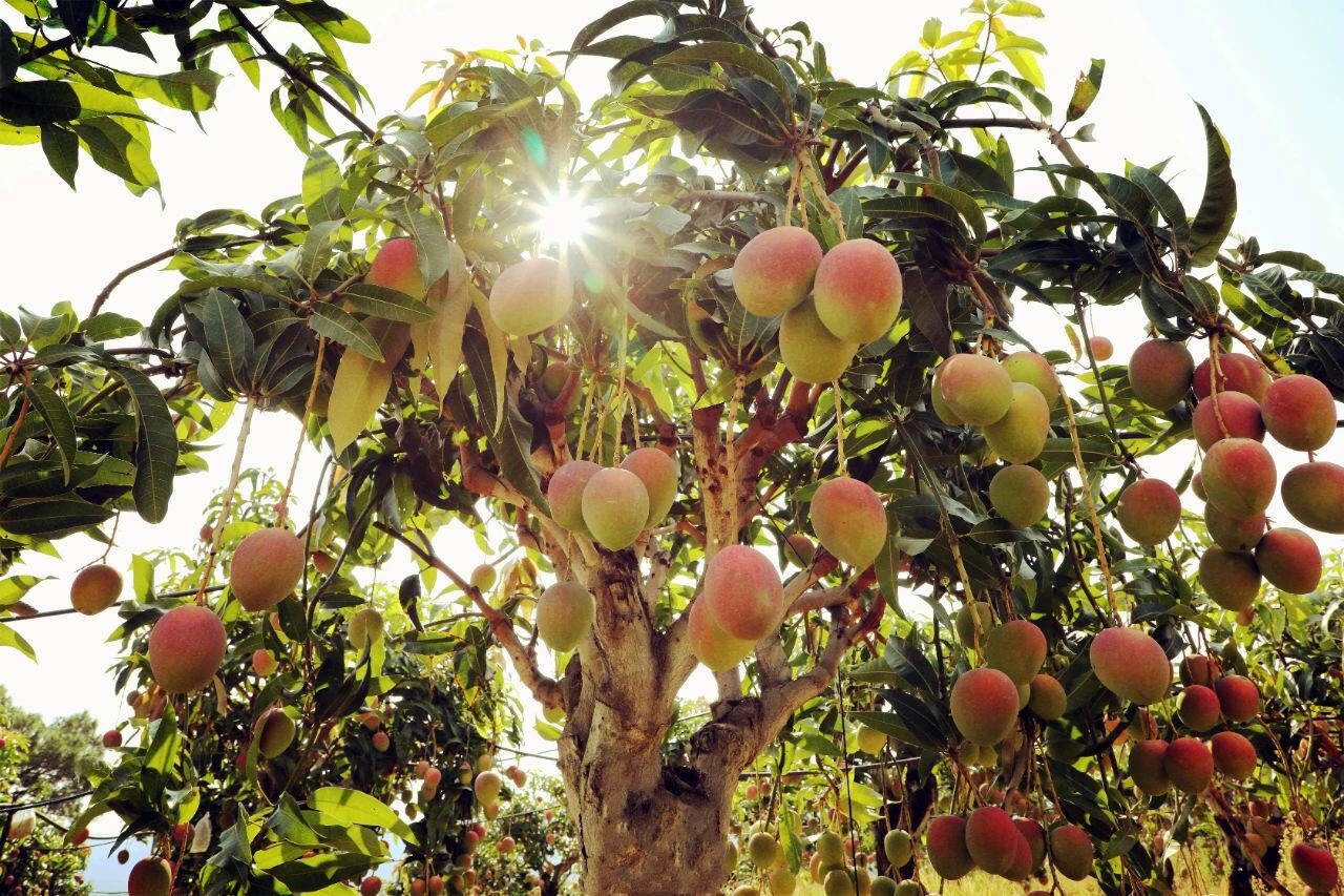 夏秋摘一颗熟透的芒果