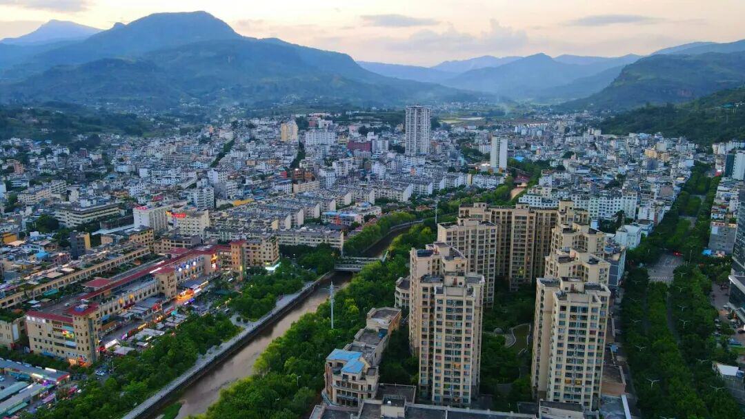 航拍华坪县城。(丽江融媒记者 和玉松 摄)