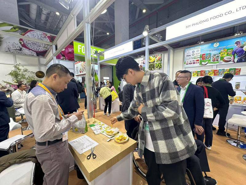 陈玉秀这次带了很多具有越南特色的农产品到上海,包括菠萝蜜果干、榴莲干、芒果干,以及各类蔬菜干。“随着越中贸易的便利化以及公司规模的不断扩大,我们把产品出口到了中国南方的多个省市,各类蔬果干在广西、浙江等地畅销。我们还在南宁的大型商超铺货,在中国的电商平台销售。希望能通过进博会的平台把越南优质产品带给更多中国消费者。”
