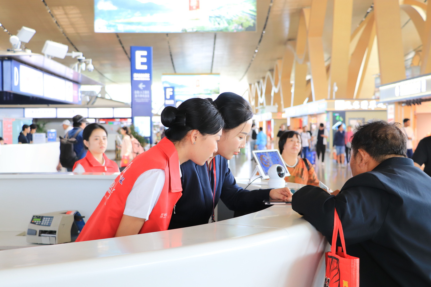 昆明长水国际机场工作人员为旅客服务 受访单位提供