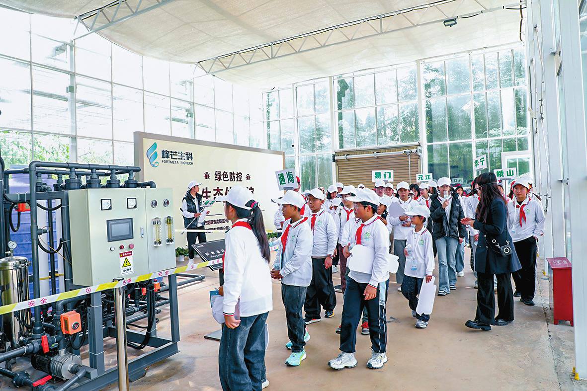 峨山县采取“卡通图片+动画短片”的创新形式,让同学们直观地了解什么是农业面源污染以及应对方法。同时,还结合峨山本土农业场景,运用黄板(诱杀蚜虫、粉虱)、蓝板(诱杀蓟马)等农业绿色防控常用工具,充分调动课堂气氛,让同学们更直观地感受农业绿色防控的重要性,激发学生对生态保护的浓厚兴趣。“我带着同学们一次次参加生态环保主题活动,大家从最初单纯的游览观赏,渐渐意识到人和生态是休戚与共、紧密相连的,进而慢慢树立起生态环保理念。”峨山县带队老师范丽在带领学生到市科技馆开展研学活动时说,“当生态保护成为全民的广泛共识,绿色发展才算真正有了最坚实的根基。”