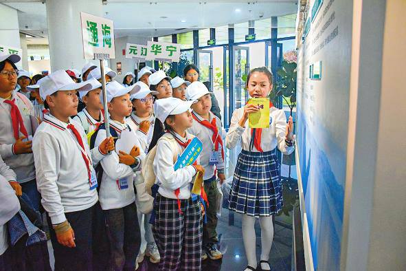 在“行”的环节,“小手拉大手”家庭环保行动全面铺开,产生了联动效应。孩子们纷纷化身“环保监督员”,认真督促家长使用菜篮子代替塑料袋、仔细记录家庭用水量、踊跃参与社区垃圾分类活动。在云南江川星云湖国家湿地公园,由学生组成的“红领巾巡湖队”,沿着湖畔清理垃圾,实地观察入湖河道水质情况;澄江市规划馆里,学生讲解员用清晰的声音,向游客介绍抚仙湖“湖泊革命”的历程;玉溪市科技馆里,“小小星火”红领巾讲解员热情地向参观者介绍环保科技展品,分享生态环保知识,从节水节电的小发明到资源循环利用的新创意,让大家深刻认识到科技在环保中的重要作用。