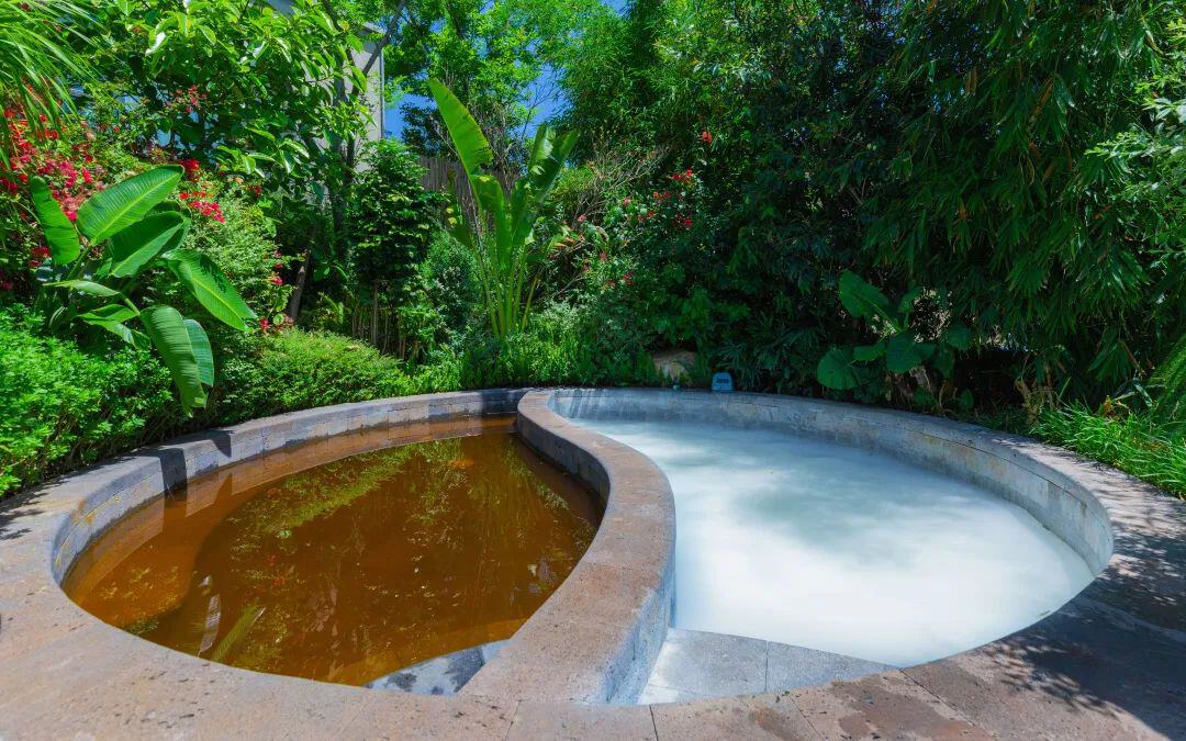 汤池周边绿意盎然,与水汽氤氲的温泉池相映成趣,真是“树绕温泉绿,尘遮晚日红”,环境优美的小庭院,干净宽敞的温泉池,在这里泡上一场,清凉舒爽。