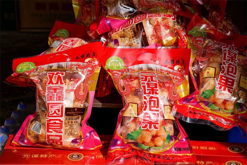 元谋泡果以“甜如蜂蜜、泡如棉花”而著名,在云南享有很高的声誉。成品泡果表面金黄油亮,内呈雪白网状,似丝瓜瓤,入口香、甜、酥、软,入口即化,细腻无渣。