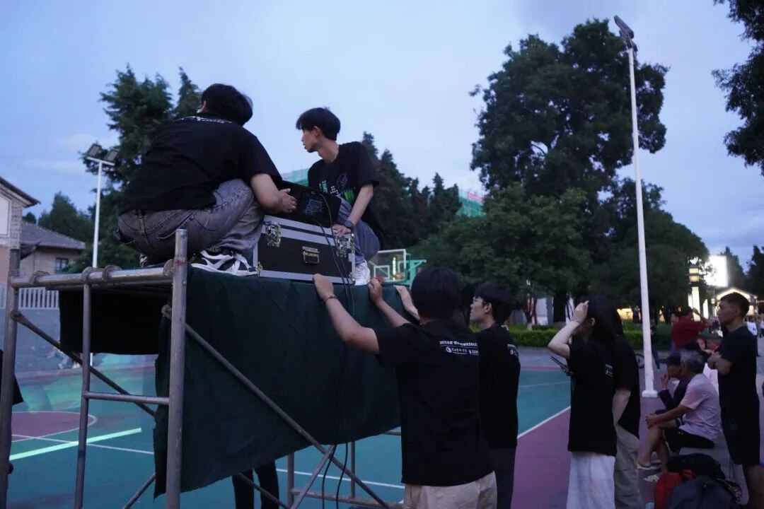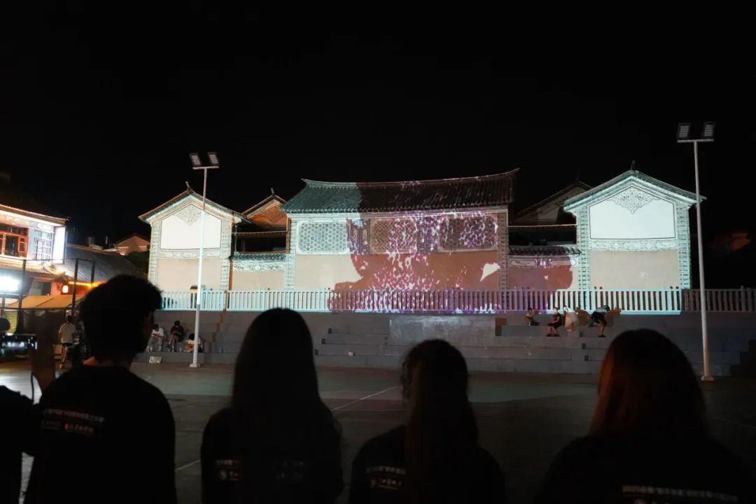在实践末期举办的创作展上,团队成员利用投影设备,举办了一场别开生面的灯光秀。数字纹样库、动态纹样、古建筑数字模型等成果一一亮相,这些成果不仅收获了非遗传承人、巍山文旅局及现场市民的点赞,更以 “可看、可玩、可传播” 的数字形态,让传统技艺进一步走进大众生活,为巍山非遗进行数字化现场传播。