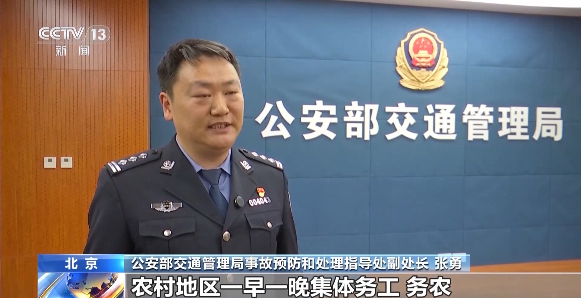 公安部交通管理局事故预防和处理指导处副处长 张勇:农村地区一早一晚务工务农集体出行较多,货车、三轮汽车、拖拉机等违法载人以及面包车超员载客违法易发多发。