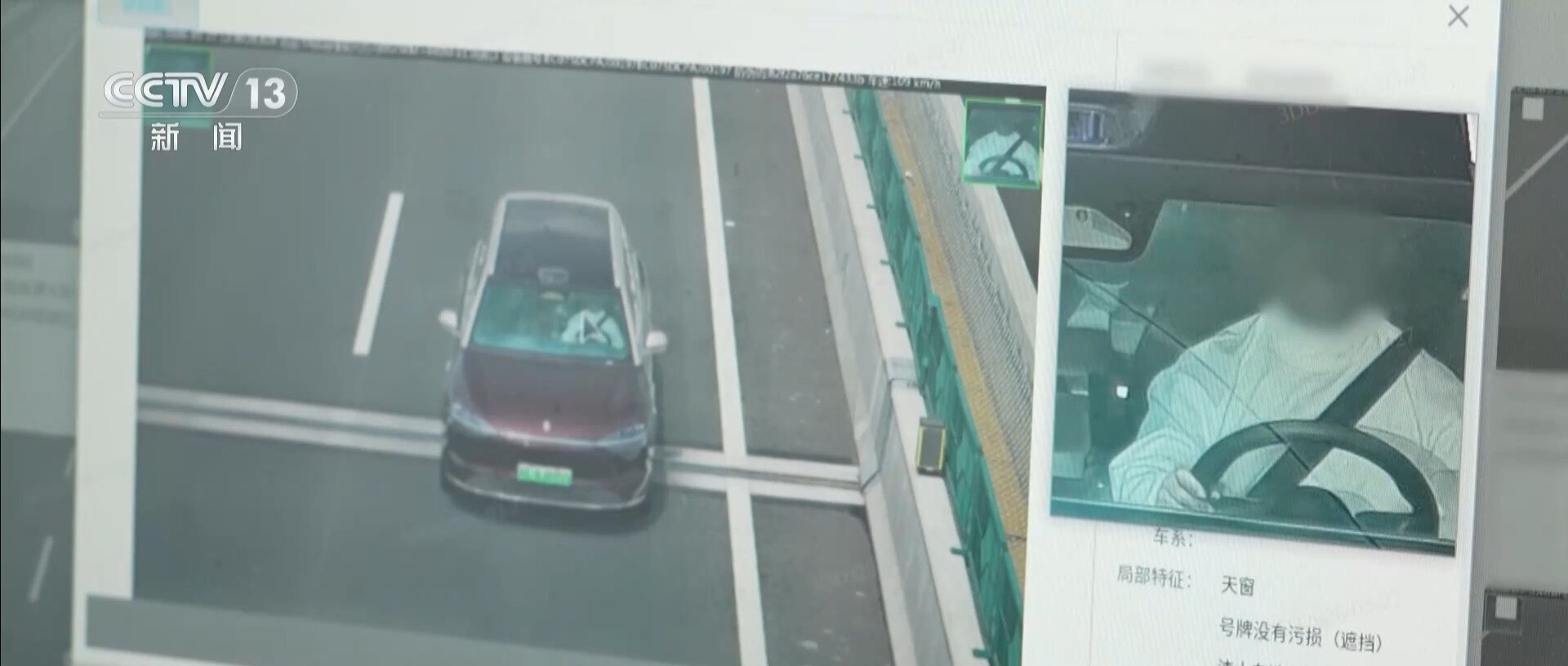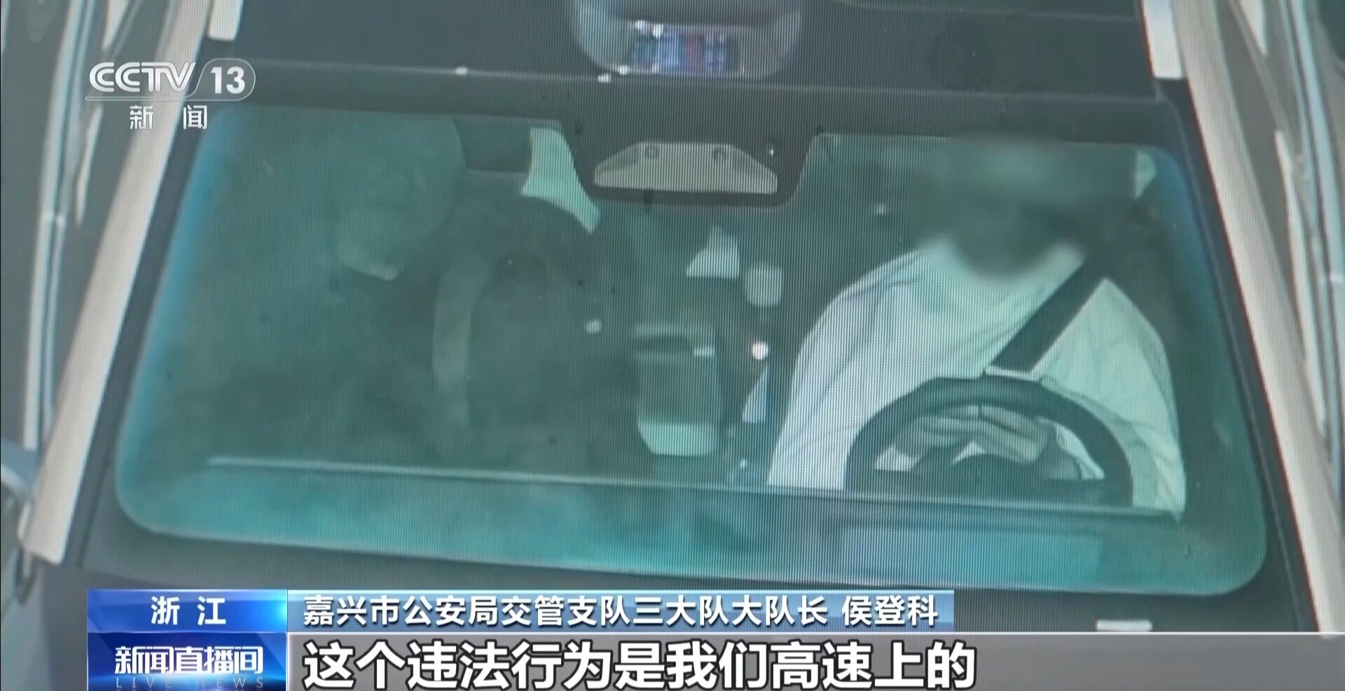 嘉兴市公安局交管支队三大队大队长 侯登科:现在我们已经抓拍到了一辆新能源汽车,开启了这个智能辅助驾驶功能,他的双手完全已经脱离了方向盘,低头在看手机状态,这个违法行为是我们高速上的一个高危的违法行为,民警同志会立即联系他,让他能够及时将这个违法行为消除。