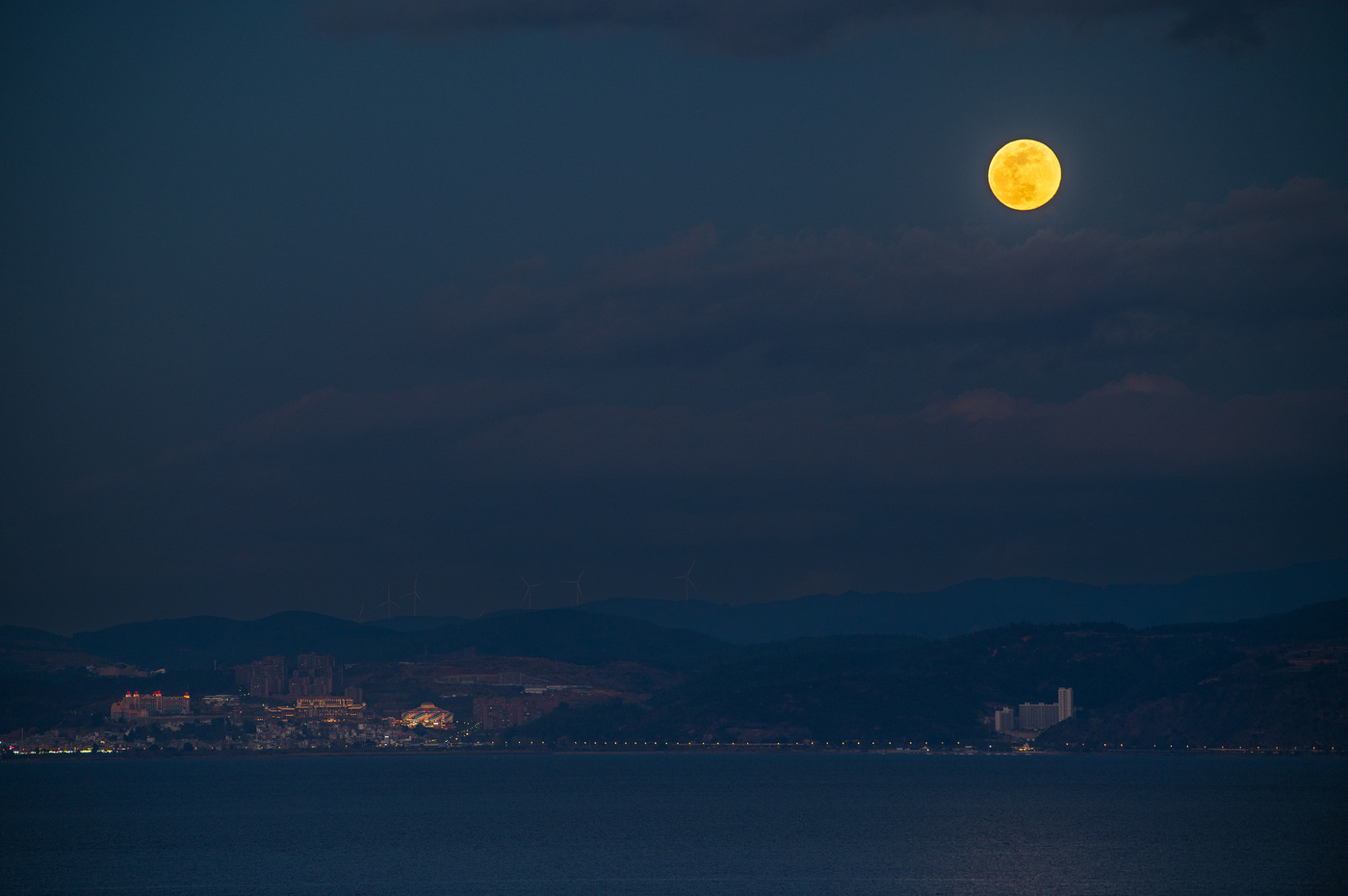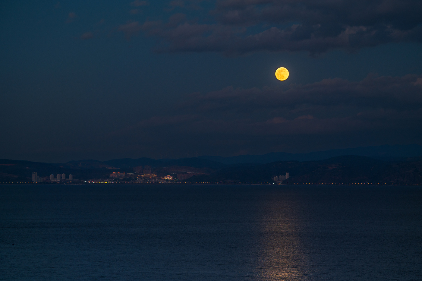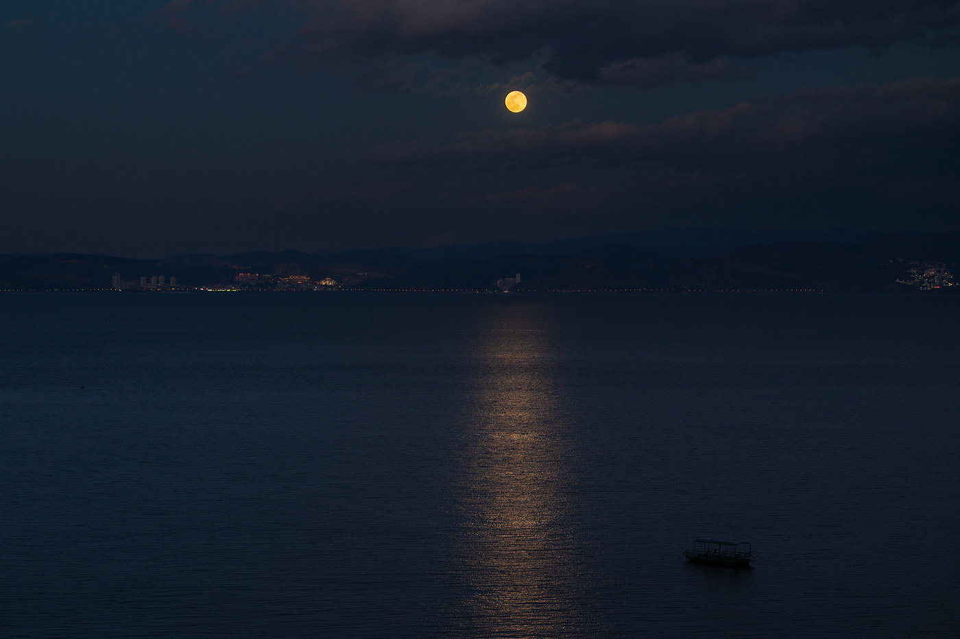 请收下这份水天浪漫:“超级月亮”映照抚仙湖