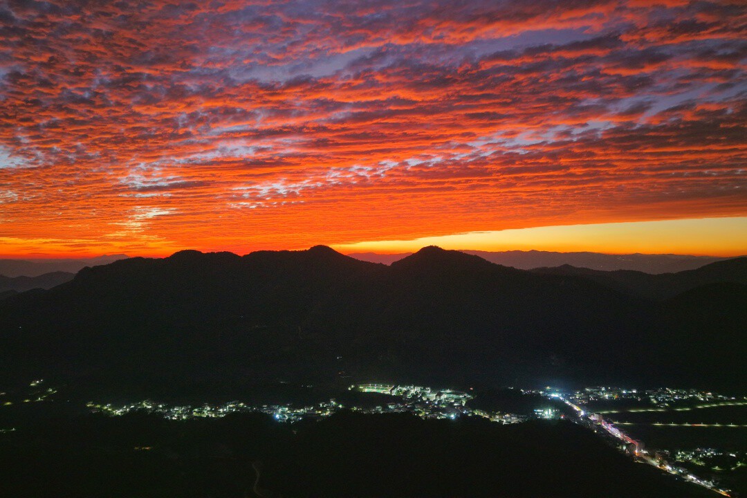 当最后一抹霞光消散,村寨里的灯火次第亮起,与天边残留的余晖遥相呼应。此刻的昌宁,既有自然馈赠的视觉盛宴,又有人间烟火的温暖质感。冬日的寒冷,仿佛都被这绚烂的晚霞与质朴的烟火抚平,只留下满心的治愈与眷恋。