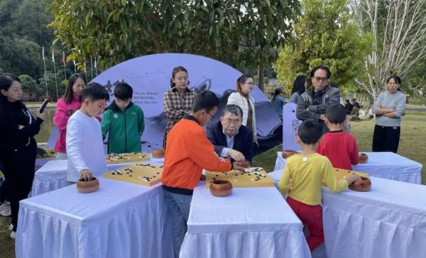首届普洱市东盟围棋邀请赛期间,聂卫平同时与五名普洱少年进行指导棋对弈。