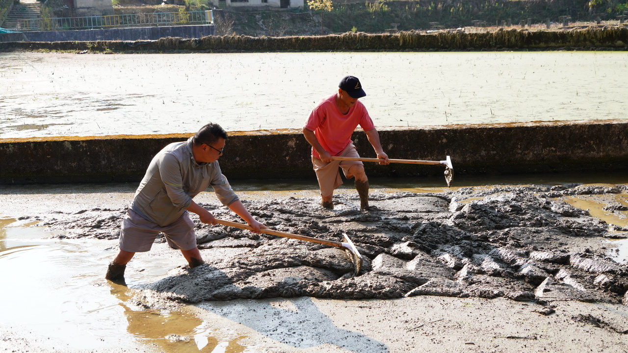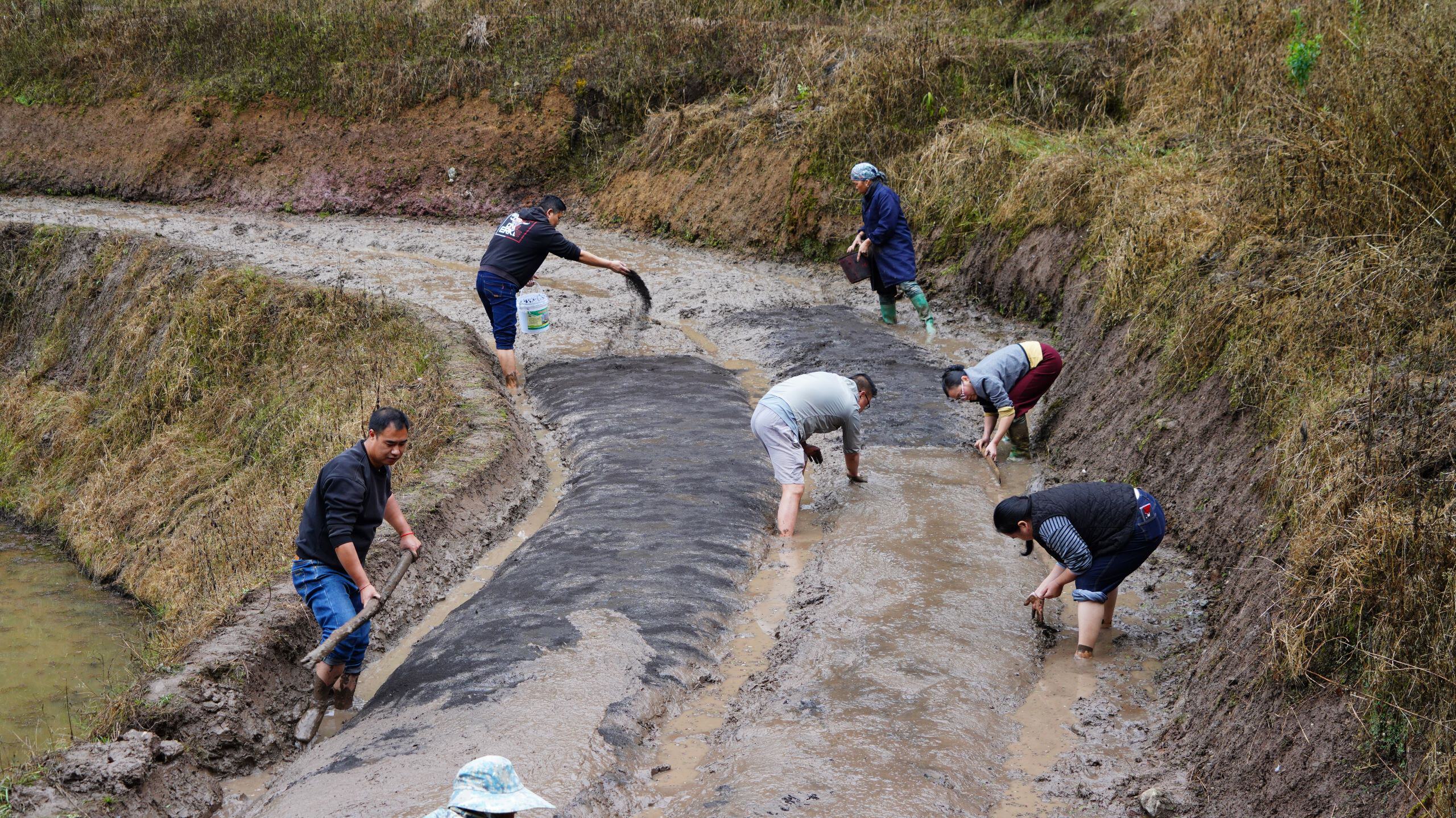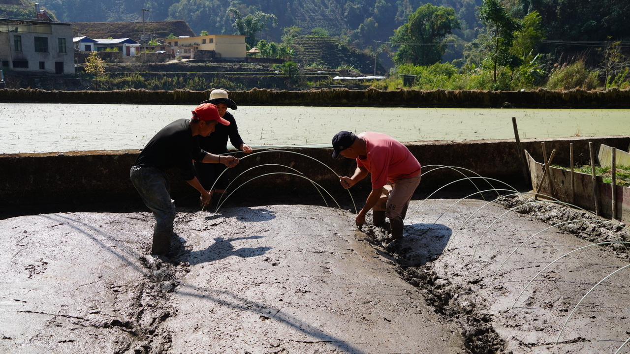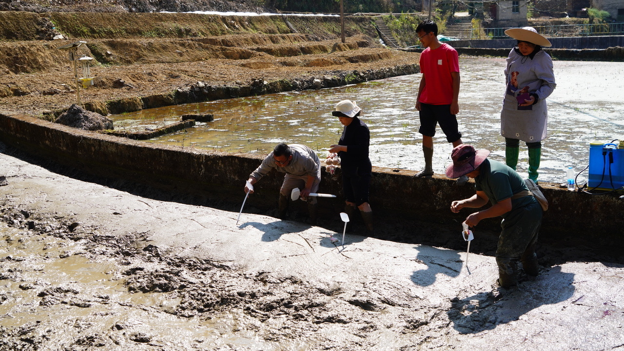 经过几场春雨的洗礼,大地开始复苏,犁头翻开的泥土,冒着清新的味道。田埂上,特派团成员徐雨然不顾泥泞亲自下田,从起垄、施底肥、平整、撒种、覆膜等方面进行示范,手把手向工作人员和村民讲解水稻育秧的关键技术,针对当地水稻种植中前期常见的病虫害绿色防控技术和科学选用生物农药及配比给予专业指导,帮助种植户减少农药使用量,提高稻米品质。特派团人员分工明确,各项工序有条不紊,齐心协力为夏粮丰收播撒下希望的种子。